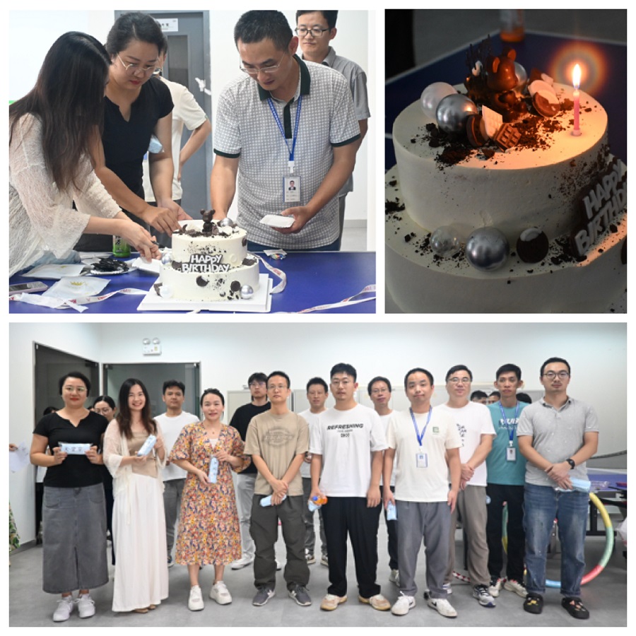 当生日歌的旋律缓缓响起,全场灯光渐暗,寿星们在众人的簇拥下走到蛋糕前。摇曳的烛光中,大家闭上眼睛默默许愿,有人希望工作顺利,有人期盼团队越来越好,简单的愿望里满是对西宝的热爱。“呼~~”蜡烛熄灭的瞬间,掌声与欢呼声同时响起。切蛋糕、分蛋糕,一块块甜蜜的蛋糕在员工手中传递,温馨的画面如同家人团聚。这一刻,每个人都深刻感受到:在西宝,不仅是工作伙伴,更是彼此牵挂的“家人”。